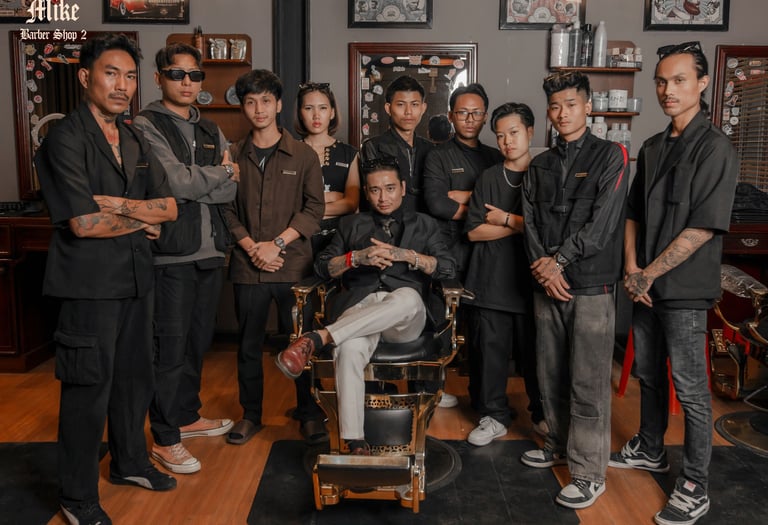 At Mike, we blend classic barbering with a premium touch, set against a rich black and golden backdrop in the heart of Yangon.